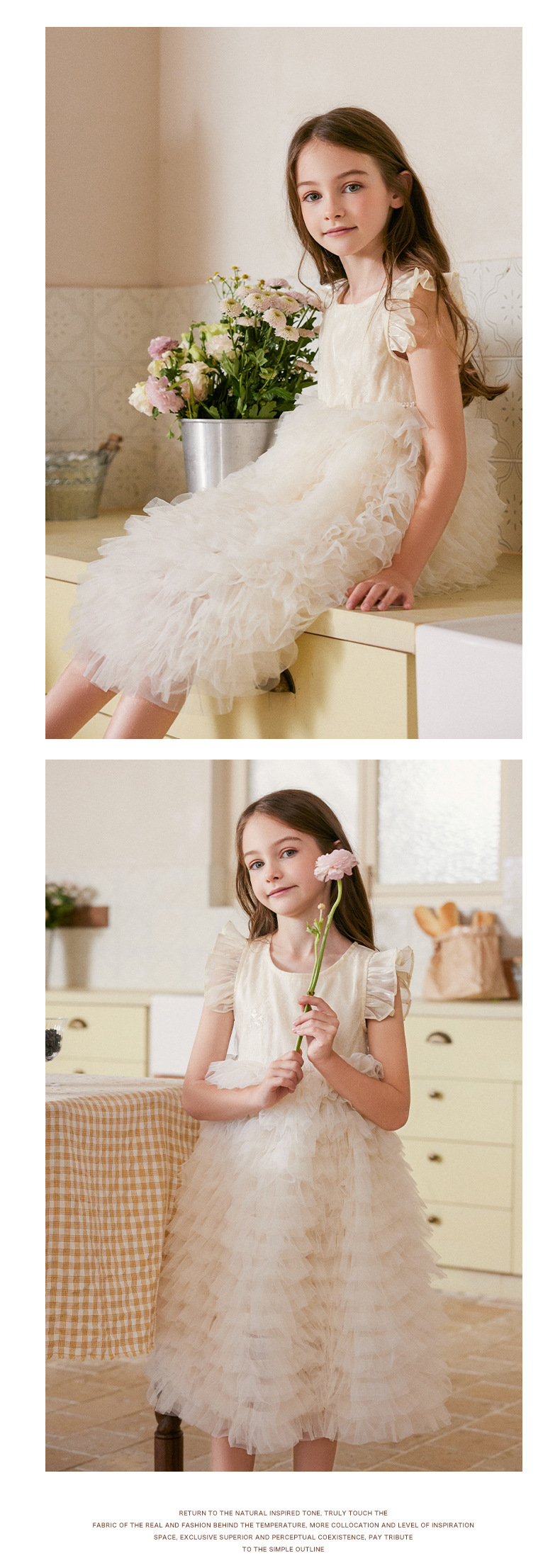 Summer girl dress, children's princess gauze skirt, stylish and elegant, flying sleeve cake skirt, delicate thousand layer mesh skirt