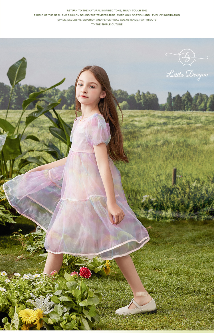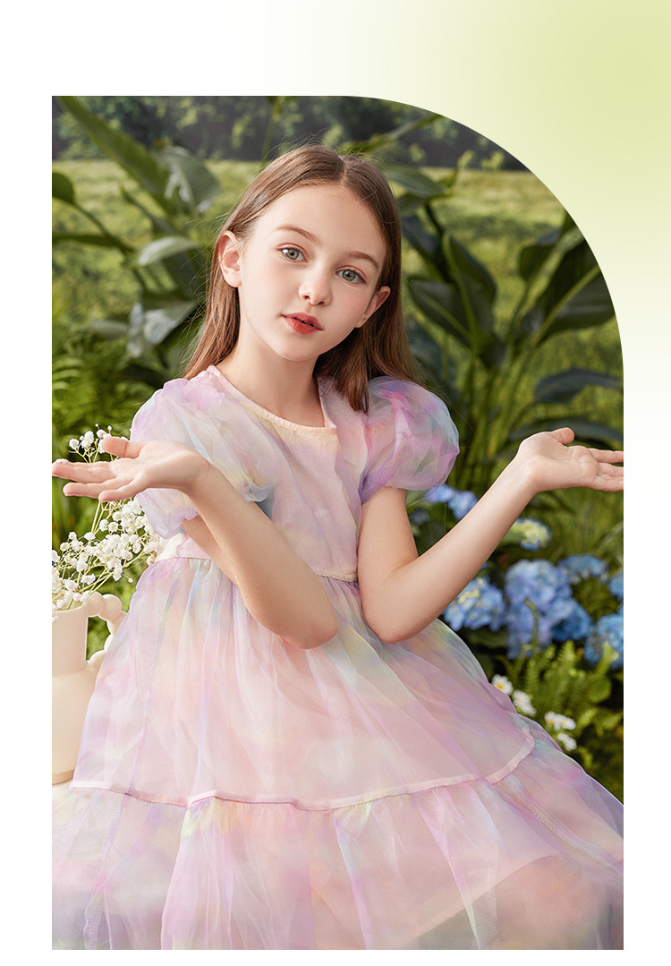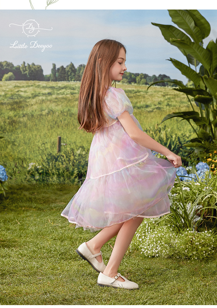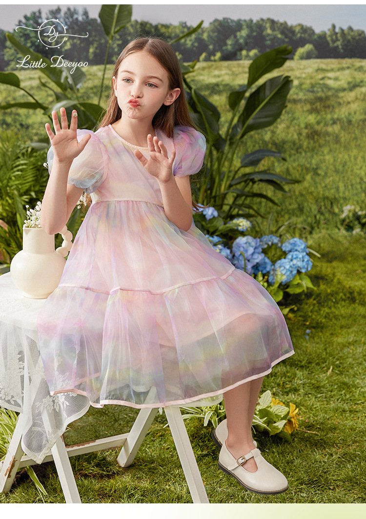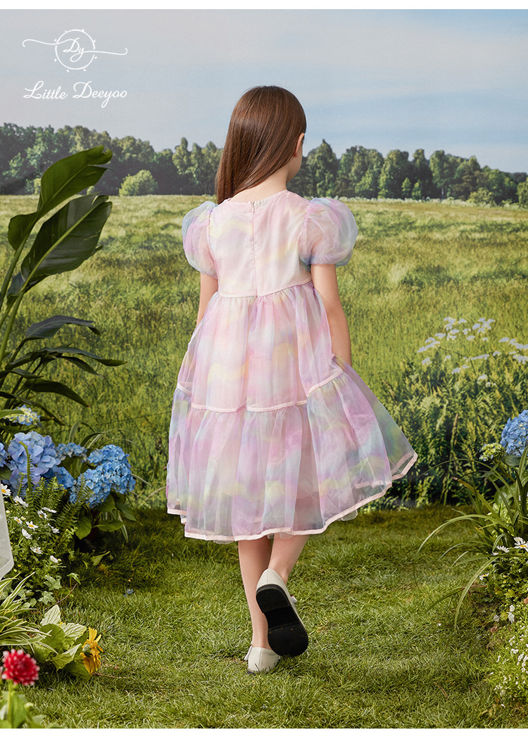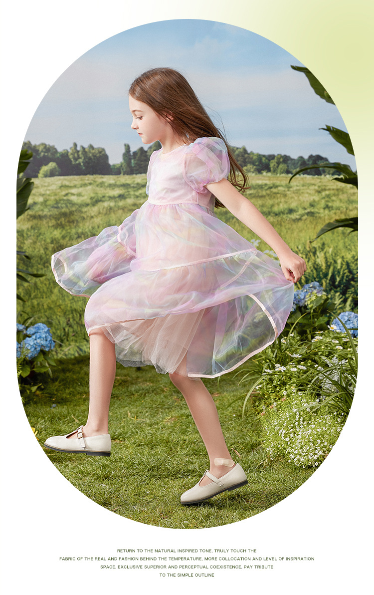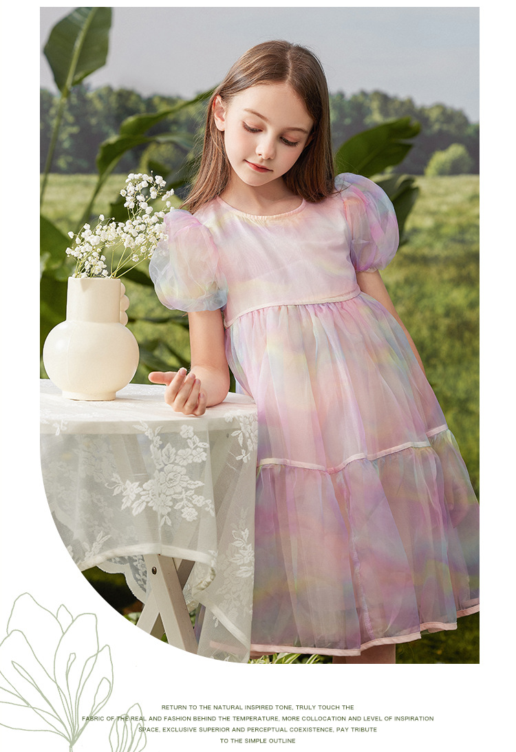 Western style girl's summer dress children's gradient short sleeved fluffy skirt big children's summer dress princess skirt