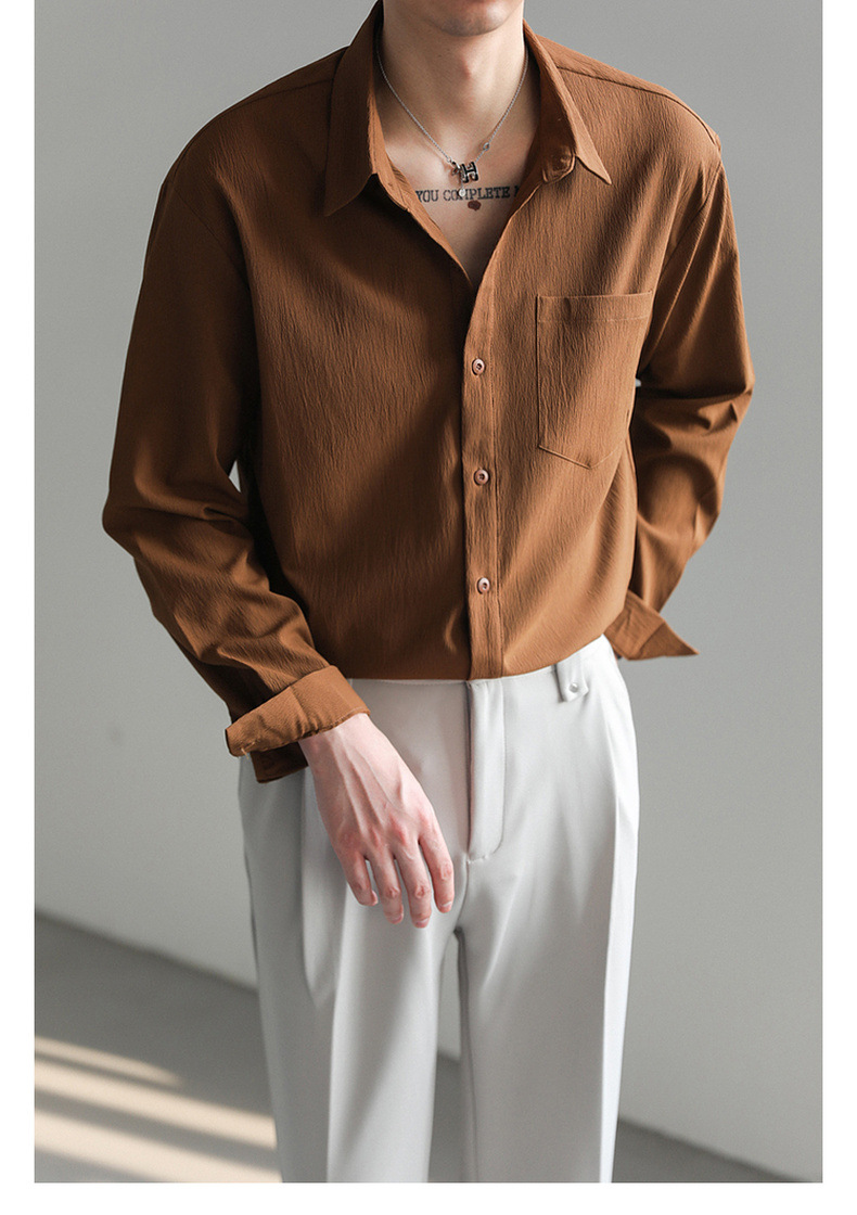 Long sleeved shirt for men, loose casual, solid color, no iron shirt top