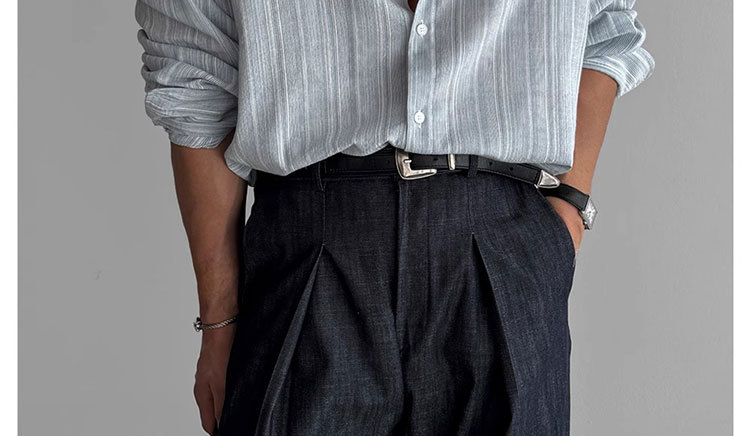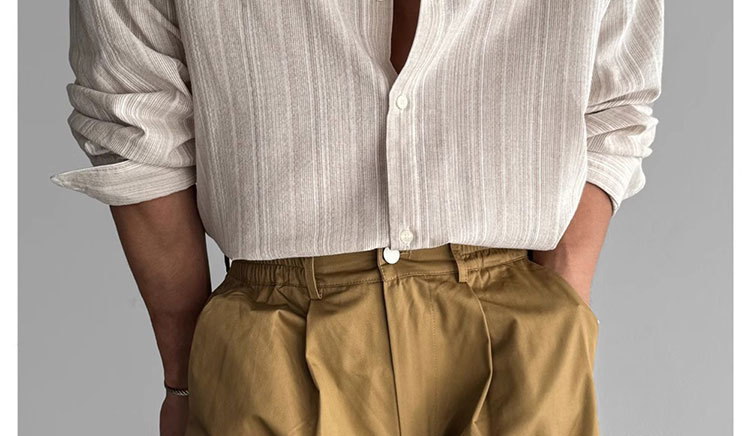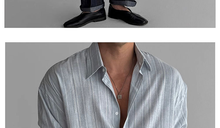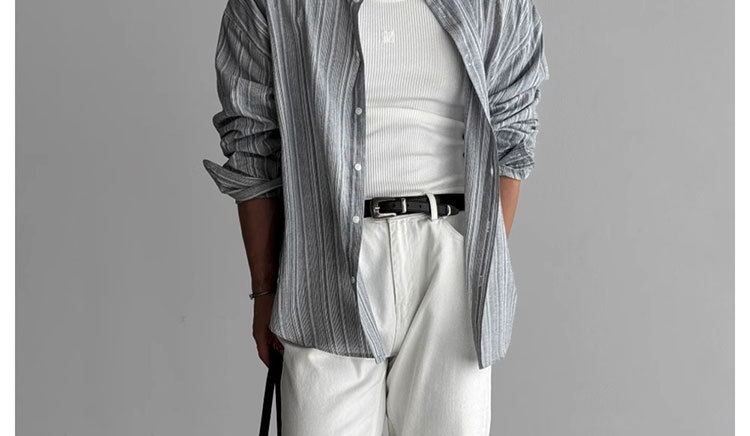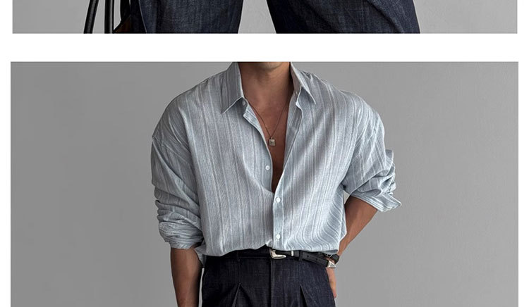 Linen striped long sleeved shirt for men, light mature style, casual, no iron blue lightweight shirt