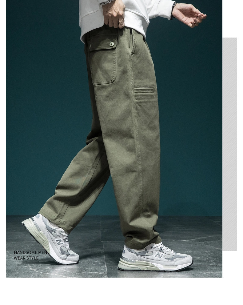 Khaki casual pants men's loose fit plus size straight leg work pants autumn men's sports pants