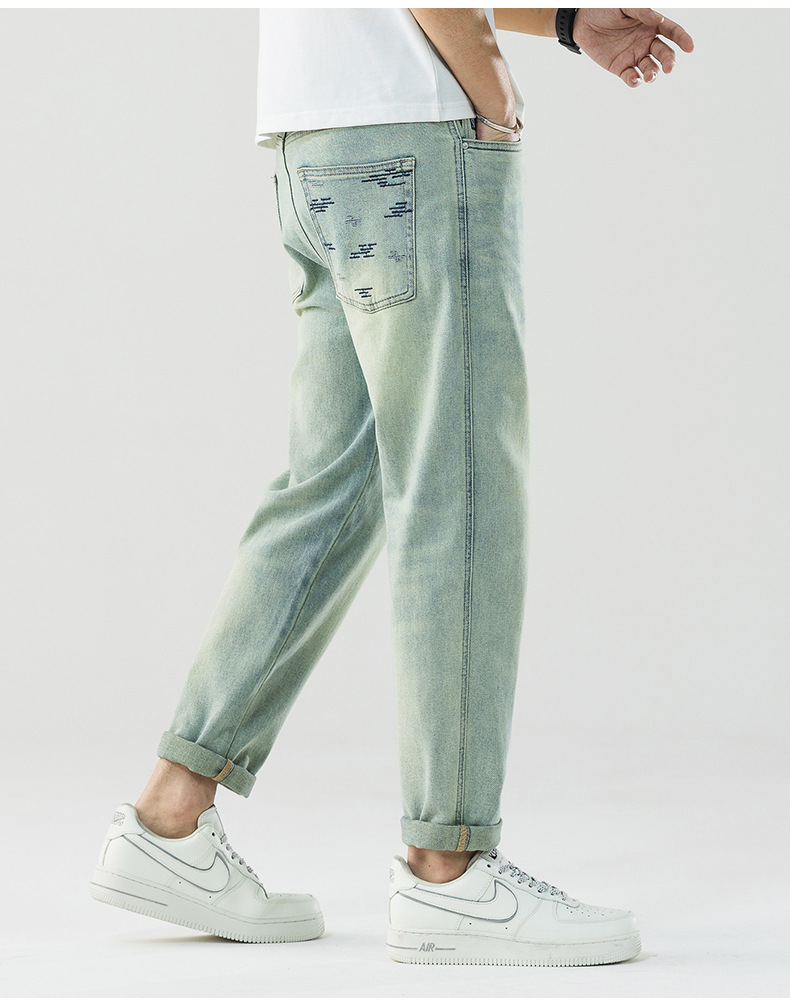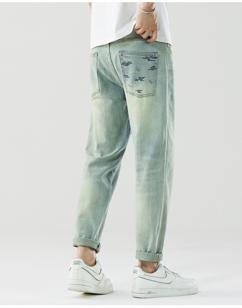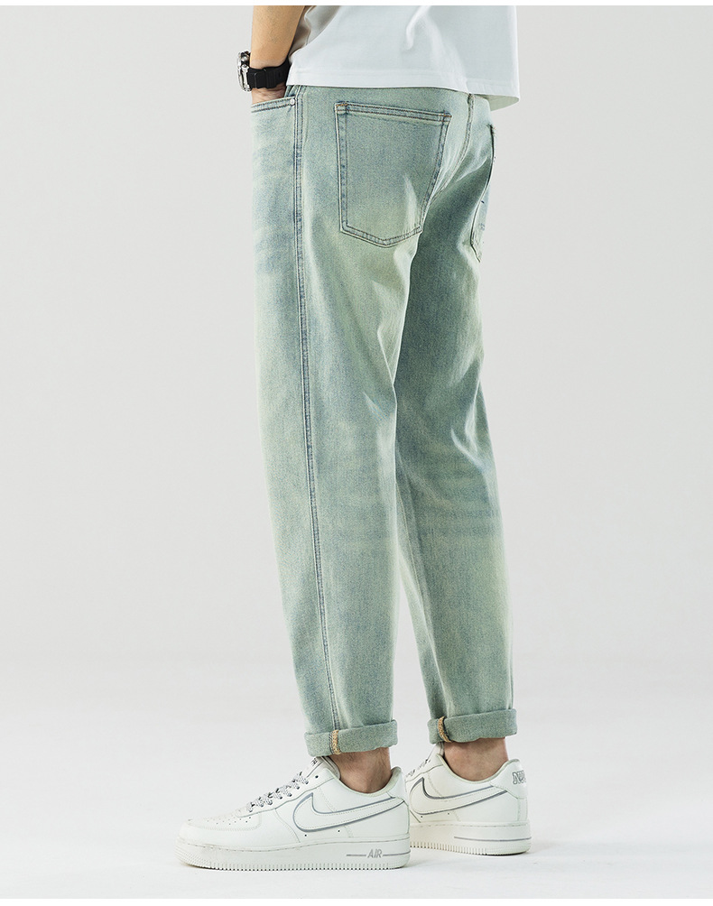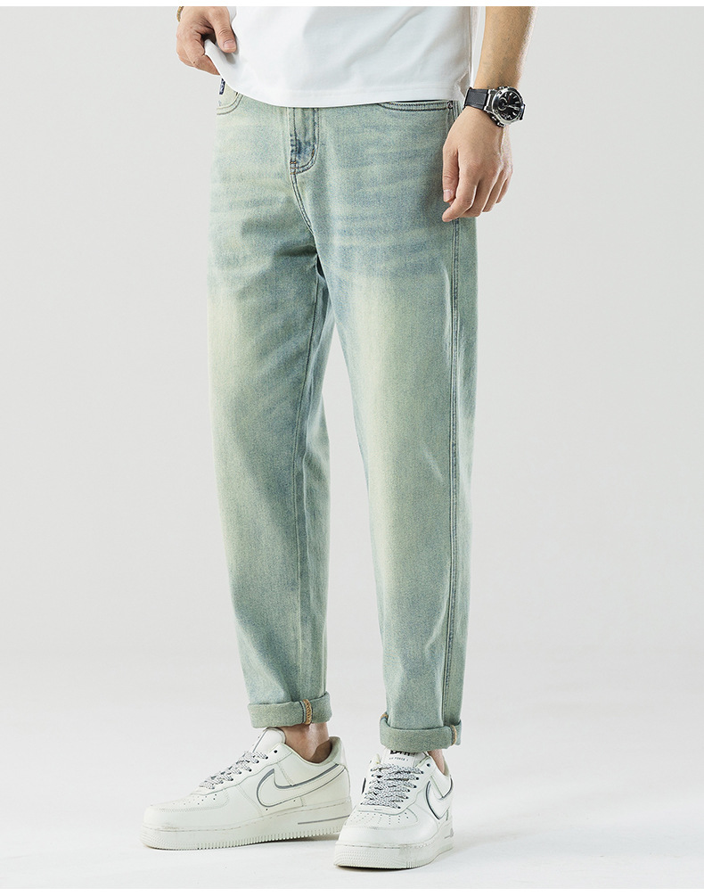 Men's jeans retro washed loose and slightly cross fashionable men's straight leg denim pants