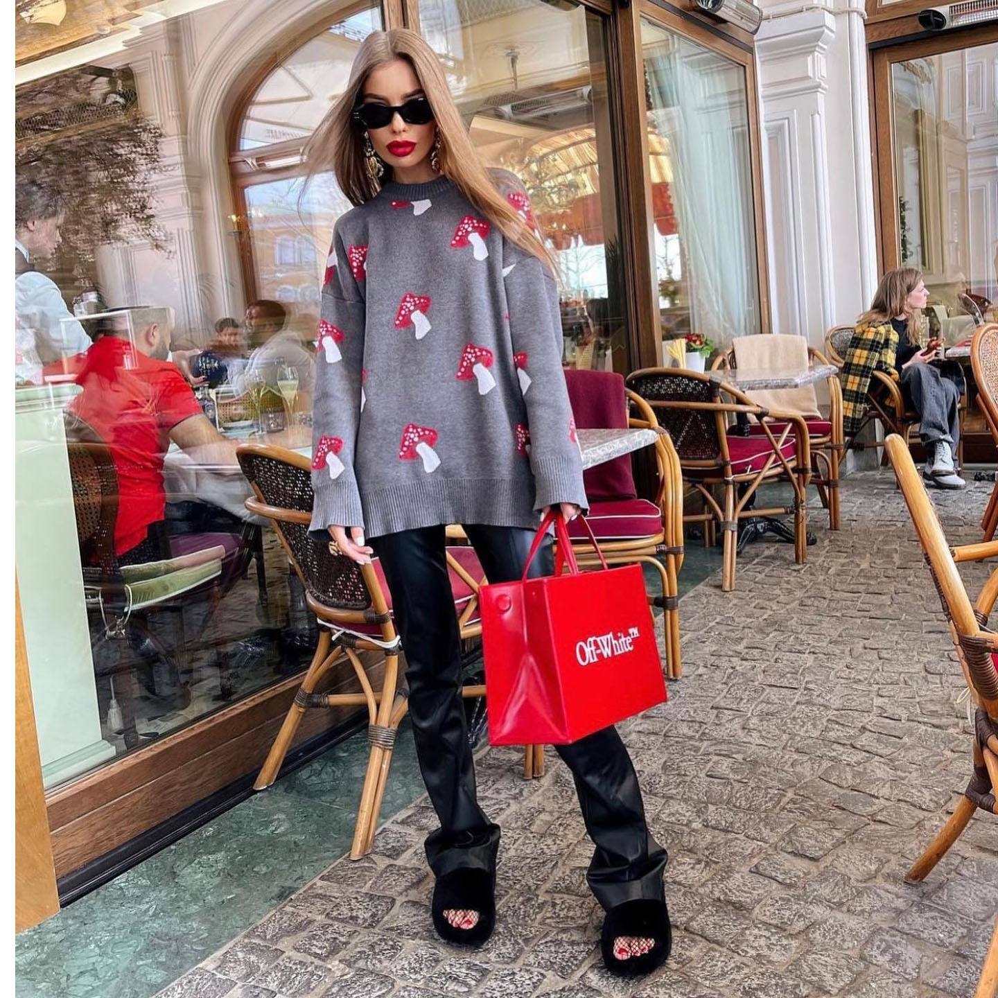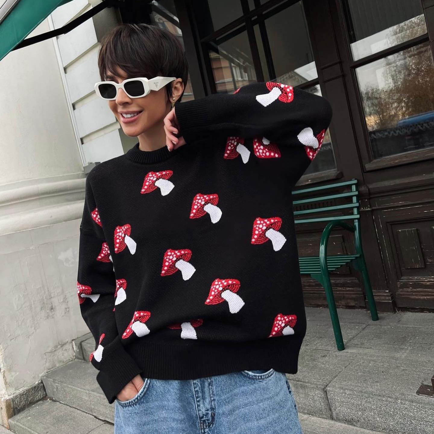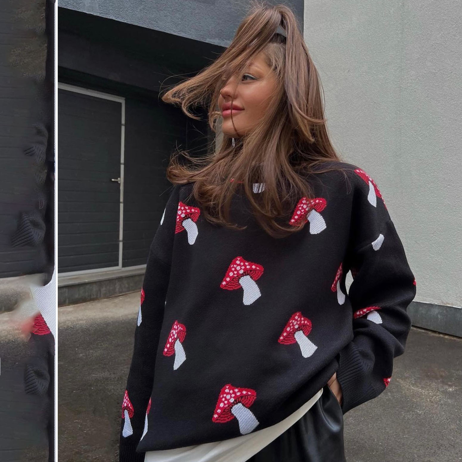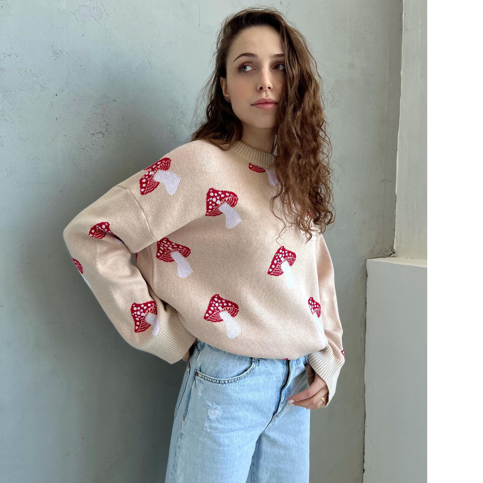 Printed sweater women's loose top casual lazy style long sleeved knitted sweater women