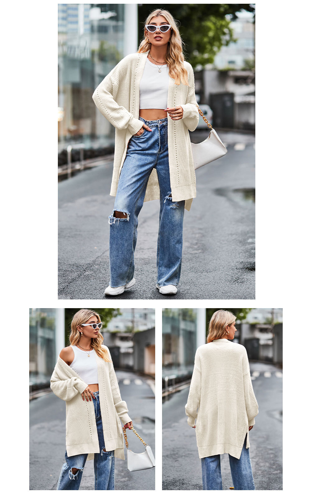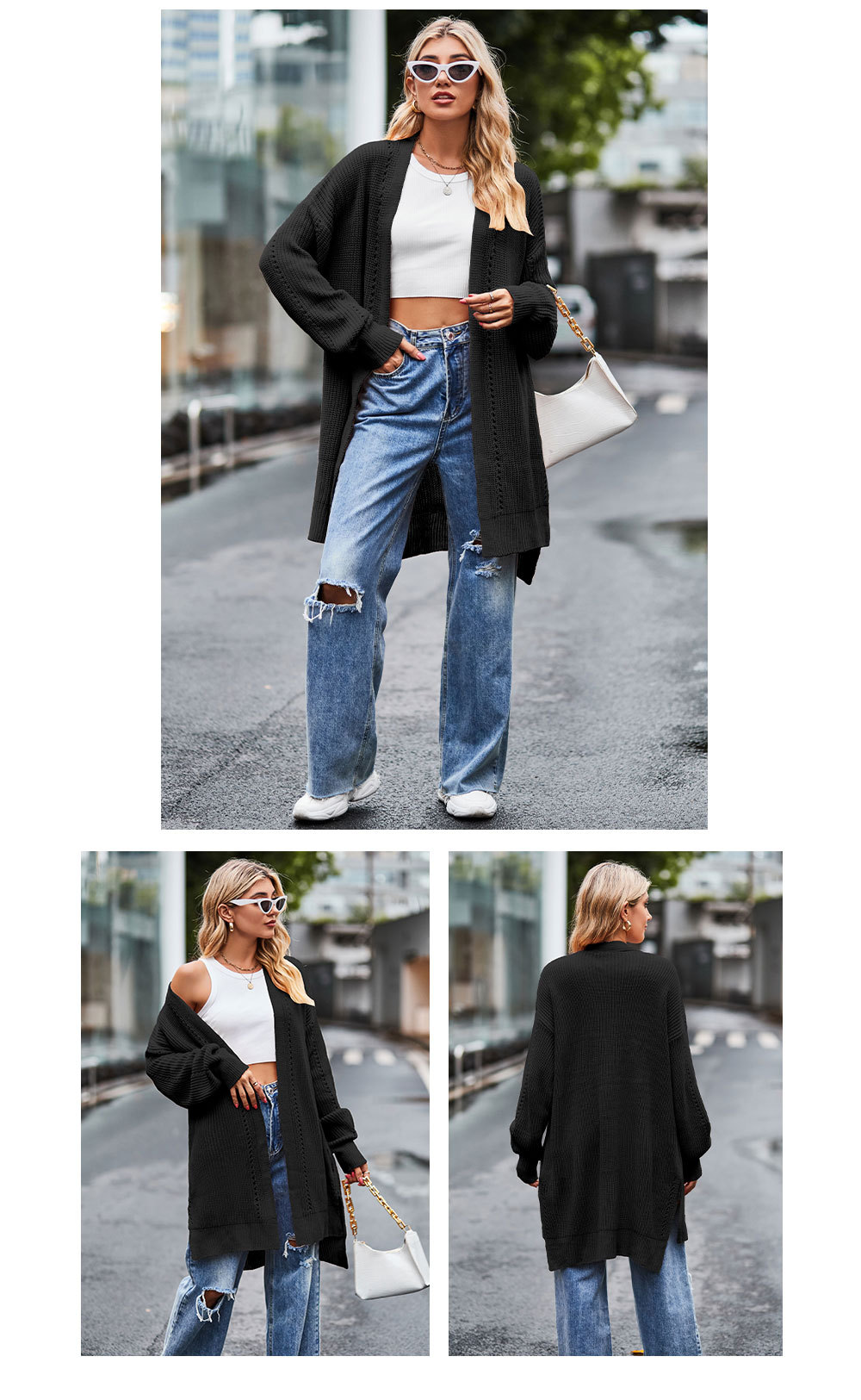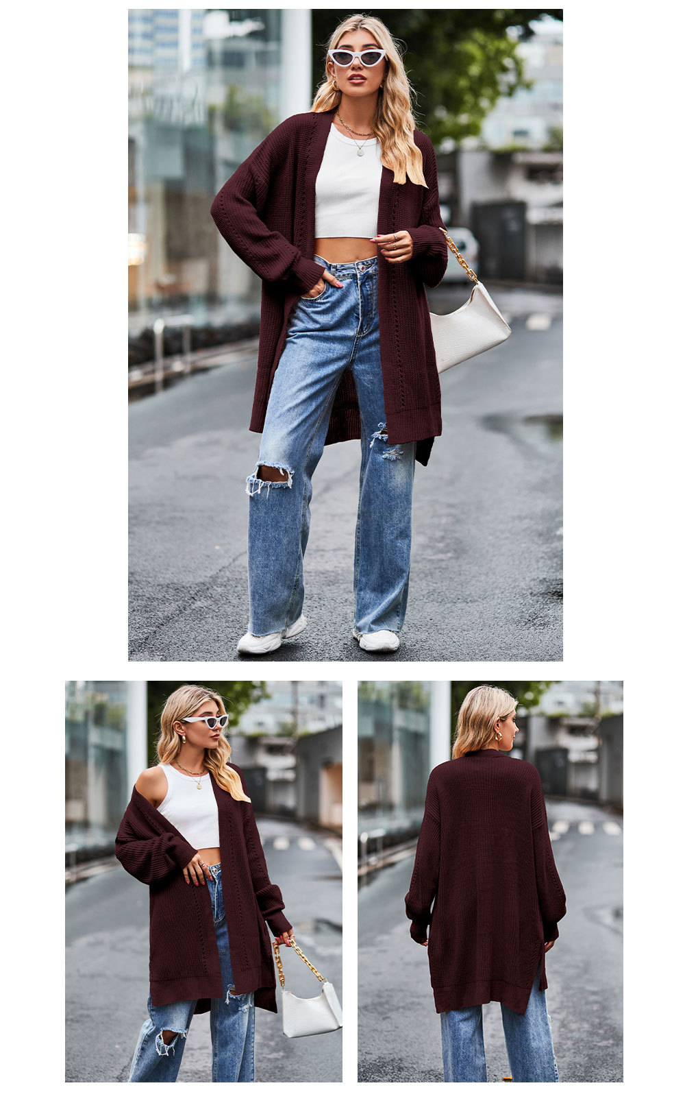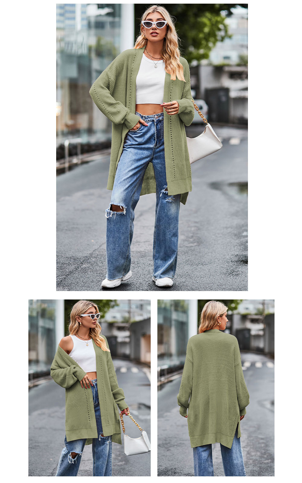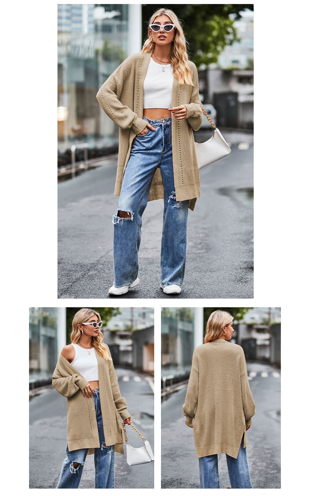 New women's solid color loose knit sweater women's pocket jacket sweater women
